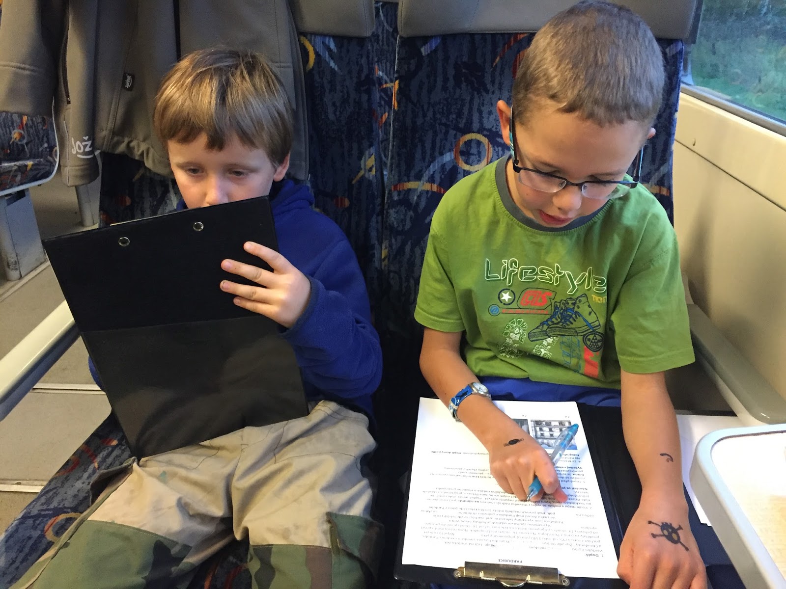 Kluci měli s sebou zase dopředu předpřipravené pracovní listy, které si stihli skoro celé vyplnit už ve vlaku (ke stažení TU). Jeden z úkolů bylo dojít podle mapy z vlakového nádraží až k Perštýnskému náměstí a cestou najít sochy Jana Pernera a Jana Kašpara. Cesta není složitá, ale je celkem dlouhá, přesto to kluci zvládli úplně v pohodě.